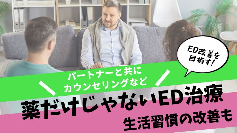 EDの治療と聞くと、「薬を飲むしかない」というイメージを抱く方が多いかもしれません。しかし本記事でご紹介してきたように、EDの治療法にはさまざまな選択肢があり、薬以外にも生活習慣の改善や心理的サポート、最新技術を用いたアプローチなどが存在しています。